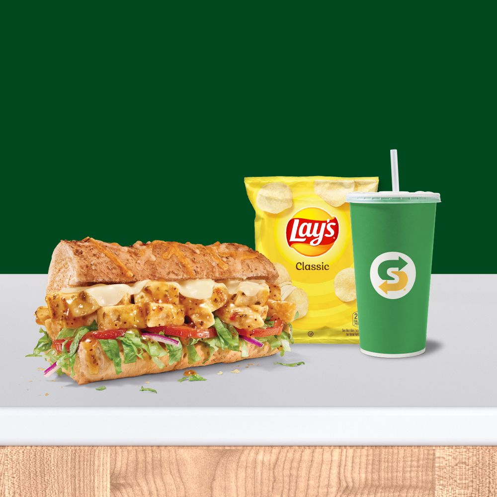 Fire up your taste buds with rotisserie-style chicken slathered in a double serving of our creamy NEW cheddar cheese sauce, topped with crisp green peppers, red onions and fiery jalape-nos. A spicy layer of Creamy Sriracha sauce and our crispy NEW SubKrunch- are the finishing touches before it's toasted on Artisan Italian bread for heat and flavor in every bite.